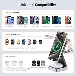Designed for Apple Enthusiasts:Fast 3 in 1 charging station for multiple devices Augnner compatible with iPhone 16/15/14/13/12 Series, All Apple Watch series and AirPods Pro/3/2(with wireless charging case) at the same time. The must-have magnetic charger stand for your home, office, travel