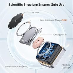 Portable but Powerful:Among many foldable wireless chargers, our folding structure is more stable and the magnetic attraction is stronger. The metal damping shaft can withstand tens of thousands of tests and still stay at the angle you wish to have. 16pcs of N52 array magnets firmly adsorb the phone to make sure continuous charging and protect the phone