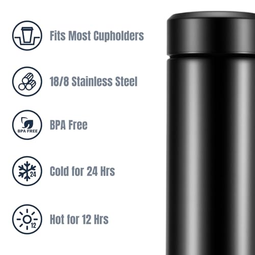 17oz Stainless Steel Water Bottles, Slim Water Bottle, Thermo Water Bottle, Insulated Water Bottle Keep Hot for 12 Hrs, Cold for 24 Hrs for Coffee, Drinks(Black)