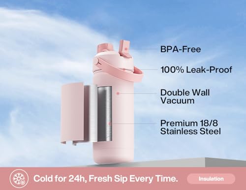 18 oz Insulated Water Bottle with 2-in-1 Straw and Spout Lid, Keep Cold 24H, Leak-Proof, Fits in Car Cup Holder, Stainless Steel Water Bottle for Sports, Travel, and School (Cotton Candy)