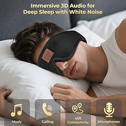 【3D Contoured Sleeping Mask, Zero Eye Pressure & 100% Blackout】Our eye masks are crafted with breathable memory foam that perfectly conforms to your face and nose shape, applying zero pressure to your eyes or lashes. The deep, spacious eye cups are designed so well that you’ll even open your eyes without detecting any light—ensuring total darkness for undisturbed rest. Wherever you sleep, this sleep eye mask creates total darkness and peace for deeper rest. Love listening to audiobooks or white noise? Just turn on the Bluetooth and flow off.