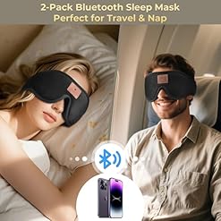 【Get 2 for Less!!!】ASIILOVI 2-Pack Sleep Mask with Bluetooth Headphones features built-in headphones, allowing you to enjoy music or audio all over sleep without disturbing your partner or roommate. Our Bluetooth sleep mask Perfect for napping, insomnia relief, air Go back and forth, and meditation. This sleep eye mask is a perfect choice for anyone seeking better sleep quality. For optimal sound, simply adjust the speakers to align with your ears.