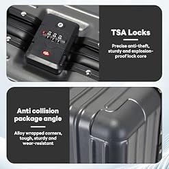 【High-Quality Materials】Lightweight Carry on Luggage with Superb Durable Material: The suitcase Used ABS+PC+Aluminium Frame Lightweight Hardside material to prevent dents and scratches. And unique corner protectors help protect high impact areas during travel