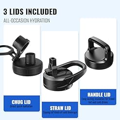 3 LIDS LEAKPROOF DESIGN: The 32 oz water bottle with straw is equipped with 3 individual wide-mouth lids to serve all hydration needs, Sip hot drinks, all caps allow for simple one-handed or hands-free sipping when you find yourself busy or on-the-go
