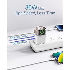 36W for Apple Charging Block with Built-in Watch Charger, Foldable PD Fast Charger Block for iPhone, Dual Ports Wall Charger Compatible with Apple Watch iPhone AirPods (White)
