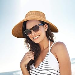 MEINICY 3 Pack foldable women’s straw sun visor hats, wide brim ponytail summer beach hat.