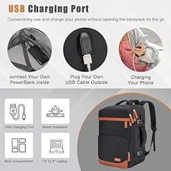 🔌【USB Charging Port – Stay Powered Anywhere】Equipped with a built-in USB charging port, this travel laptop backpack allows you to charge your devices on the go. Simply connect your power bank inside and plug in your cable externally – ideal for daily commutes, business trips, or long flights.
