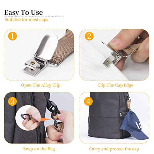 4Pcs Elastic Hat Clip for Travel, Hat Holder Hands Free Bag Accessory for Traveling Bags, Backpacks, Purses, Totes Black