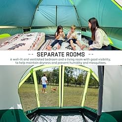 【Spacious Family Shelter for 6-8 Campers】 Accommodates families or groups comfortably with two size options: 10x8x5.7ft (6-person tents for camping) or 15x12x6ft (8-person tents for camping). Roomy interior fits queen airbeds, gear, and personal items, making it a large camping waterproof family tent for extended adventures.