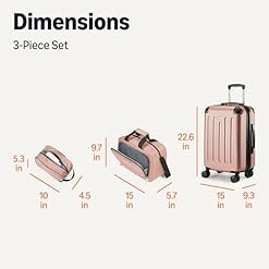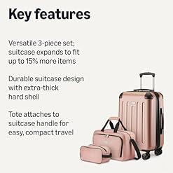 VERSATILE CARRY-ON SET: Includes commute case, tote, and hardside suitcase; commute case measures 10 x 4.5 x 5.3 inches, tote measures 15 x 5.7 x 9.7 inches, suitcase measures 15 x 9.3 x 22.6 inches (all measurements include wheels)