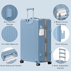 Be the first to review “AnyZip Luggage PC+ABS Aluminum Frame Zipperless Checked Luggage Hard Shell Suitcase with TSA Lock Double Spinner Wheels 24 Inch Haze Blue” Cancel reply