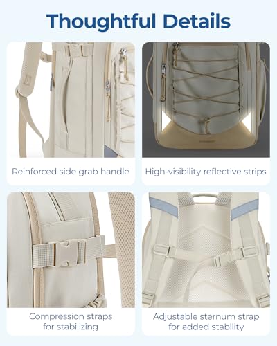 BAGSMART Carry On Travel Backpack, 17 Inch Large Travel backpack Carry On Flight Approved, Anti-theft Personal Item Backpack Travel Bag With Shoe Bag, 30L Water Resistant Casual Daypack, Beige