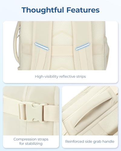 BAGSMART Travel Backpack, 30L Flight Approved Carry on Backpack with Door Lock, TSA Personal Item Backpack with 15.6 Inch Laptop Compartment & Shoe Bag,Suitcase for Travel, Classic Beige