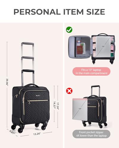BAGSMART Underseat Carry On luggage Airline approved, 16-inch Softside Underseater Travel Suitcase with Spinner Wheels Lightweight Overnight Bag Small Rolling Carry-on for Women Men Weekender,Black