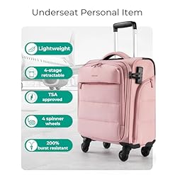 BAGSMART Underseat Carry on Luggage with Wheels, Soft Underseat Travel Luggage with PVC Wet/Dry Pockets, Lightweight Soft Personal Item Suitcase for Short Trip, Sakura Pink
