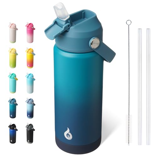 BJPKPK Insulated Water Bottle with Straw Lid, 18oz Thermos Water Bottles with Soft Nozzle, Flex Maintain & Non-slip Boot, BPA Free Leak Proof Stainless Steel Metal Water Bottles, Tumblers, Cups,Vast