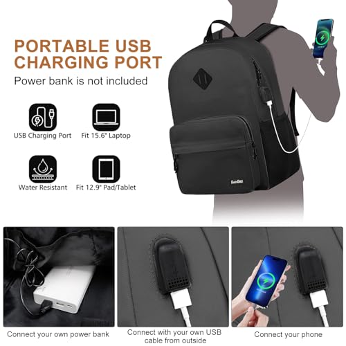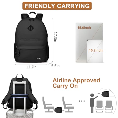 Black Backpack for School Teens Boys Girls, Lightweight Casual Backpacks for Men and Women, Classic Basic Water Resistant Casual Daypack, 15.6 Inch Laptop Bookbag for College High School Work Travel
