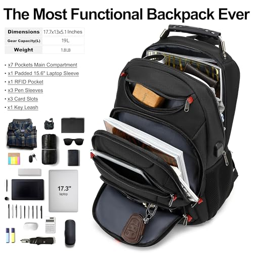 Boavan Laptop Backpack for men, 15.6 inch Laptop Bag with USB Port, Waterproof Travel Work Backpack Purse, Anti-Theft Teacher Nurse Doctor Casual Bookbags Office Business backpack,Black