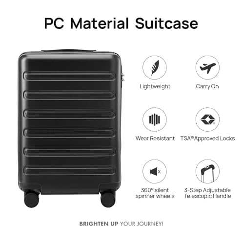 Carry on Luggage 22 X 14 X 9 Airline Approved, 20 Inch Luggage for 3-5 Days Travel, Double Spinner Wheels, Hardshell PC+ABS, TSA Lock (Black color, Carry-on-38L-20)