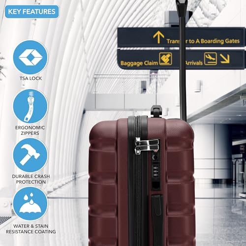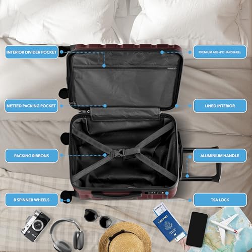 Carry On Suitcase 22x14x9 Hardside Built In TSA Lock & USB Port Lightweight Luggage Silent Double Spinner Wheels Maximum Overhead Carry-On Bag For American & United Approved Airlines