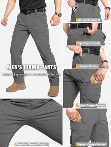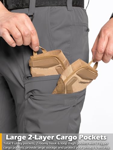 CARWORNIC Men’s Quick Dry Tactical Hiking Pants Flex Water Resistant Lightweight Outdoor Fishing Cargo Work Pants 9 Pockets