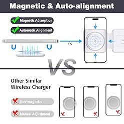 3 in one Fold Up Charger Station: The wireless charging pad contains a magnetic suction, which can automatically and as it should be charge the iPhone 12 and above series. The magnetic suction is suitable for iPhone 16/16 Plus/16Pro/16 Pro max15/15 Plus/15Pro/15 Pro max/14/14 Pro/14 Plus/14 Pro Max/13/13 Pro/13 Pro Max/12/12 Pro/12 Pro Max. It is also compatible with Apple Watch Ultra 10 9 8 7 6 5 4 3 2 & AirPods(Note: only give a boost to AirPods 2/3/4 with magnetic devices).