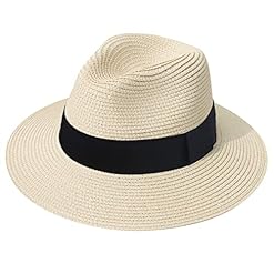 DRESHOW Women Straw Panama Hat Travel Fedora Beach Sun Hat Summer Wide Brim Straw Roll up Hat UPF 50+