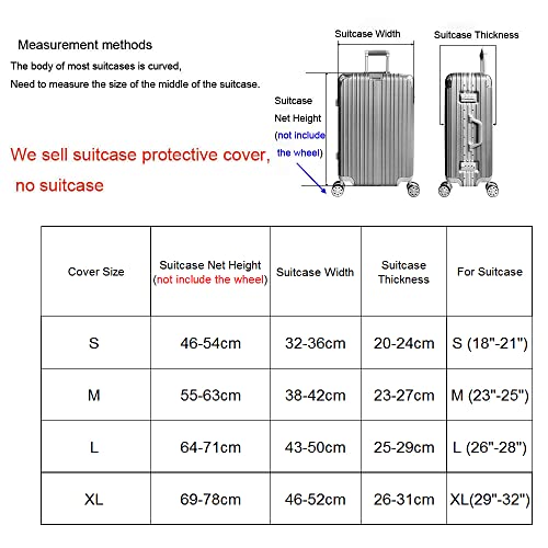 4 Size To be had: S,M,L,XL. Please refer to the table to measure the height, width and depth of the suitcase luggage.
