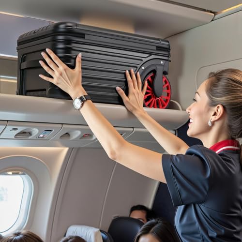 Extra Large Wheels Carry On Luggage Hard Shell Suitcase Top Opening Hardside Travel Luggage with TSA Lock (Black, 21-Inch)