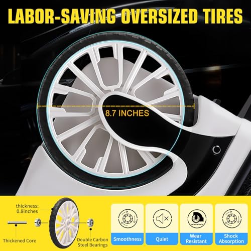 Extra Large Wheels: Our oversized directional wheels redefine durability with their dual carbon steel ball bearing system, delivering ultra-smooth rolling motion with absolute stability. The 3X-thick rubber tread and rust-proof construction face up to long-term use at the same time as maintaining perfect alignment. These wheels deliver silent, stable performance on any terrain – at all times rolling straight without wobble or resistance