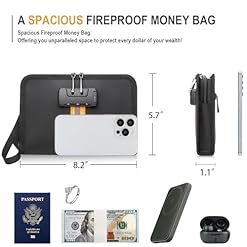 Large Capacity Fireproof Money Bag: Our Fireproof Cash Bag Provides You with Unprecedented Storage Space! The Width Is Larger, Reaching 1.1 Inches, The Thickness of A Mobile Phone Is About 0.31 Inches,It Can Perfectly Accommodate 300 Cash Notes