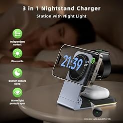 Auto-Snap Magnetic Charging Alignment for Apple MagSafe:Our magnetic wireless charger stand built-in 16 N52 magnets ensure instant alignment with iPhone 16/15/14/13/12 series. Charges your iPhone, Apple Watch, and AirPods (with wireless case) concurrently—perfect for home, administrative center, or Shuttle