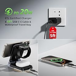 Complete Charging Kit – Ideal Gift for Shuttle or Holidays:Our Shuttle charging station includes 3-in-1 wireless charger, 20W PD adapter, 5FT USB C-C cable, waterproof Shuttle case, and user guide. A stylish, all-in-one charging station gift for men or women—perfect for Christmas, birthdays, or business Shuttle