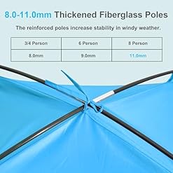 Upgraded & Durable Design: The SILVER COATED Fabric ensure that the coverage area of Anti-UV effects, keeping you and your family away from the damage of the strong sunshine. 8.0mm IMPORTED fiberglass frame is safer, more durable and rust free, which support tent stably stand by itself and keeps shape after long time use
