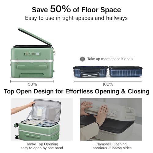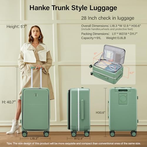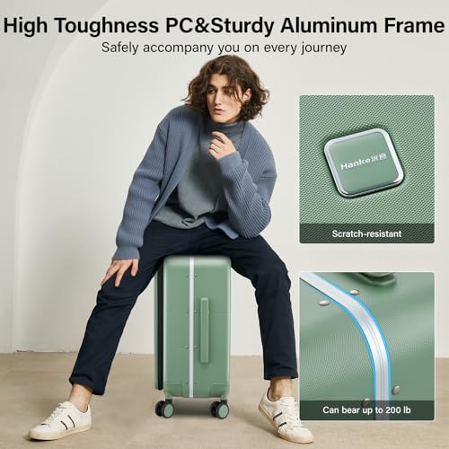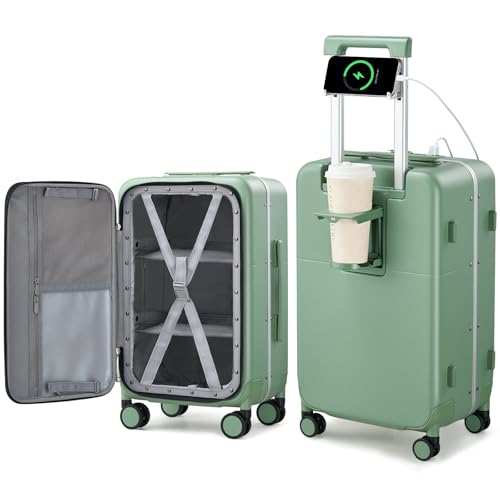 Hanke 28 Inch Luggage with Cup Holder and Charge,Top Opening Hard Shell Suitcases with Wheels and Dividers,Aluminum Frame Trunk Luggage Extra Large Suitcase with Lock for Travel,Forest Green