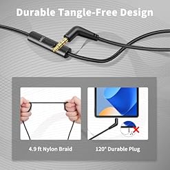 【Durable Nylon Cable】With a 4.9ft high-quality nylon braided cord, these corded headphones prevent tangling, offering smooth, hassle-free movement. Our headphones feature a 120° curved plug design resistant construction ensures longevity while providing comfort and flexibility
