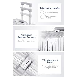 100% ALUMINUM CONSTRUCTION: Crafted entirely from high-grade aluminum, including a durable aluminum handle and reinforced corners. This robust design offers superior protection against impacts and rough handling, ensuring your belongings remain secure throughout your travels.