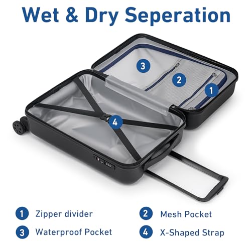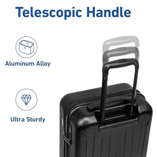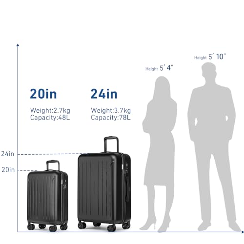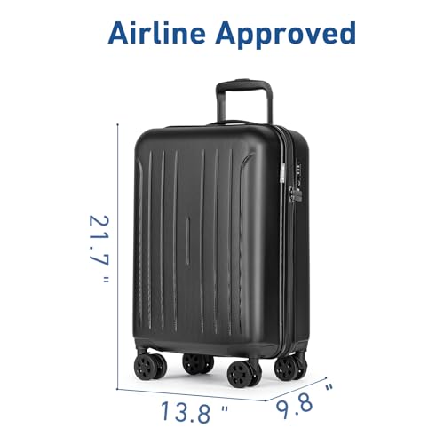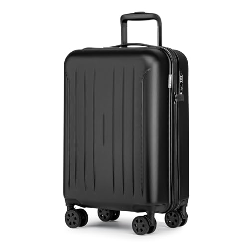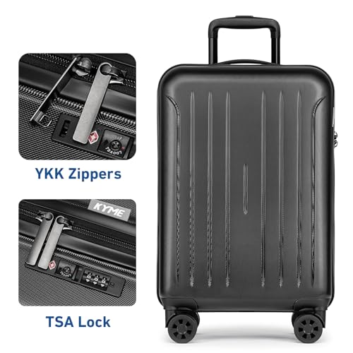 KYME Suitcase Hardshell With Double Spinner Wheels, PC+ABS TSA Lock Travel Luggage (Black, 20″ Carry On)