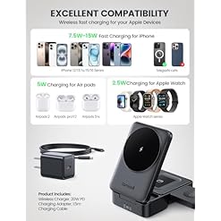 Power in a Snap: The powerful magnetic attraction of this wireless charger facilitates precise alignment and fast charging for your iPhone, Apple Watch, and AirPods. With our wireless portable charger for MagSafe, you’ll be able to enjoy the protection of over-temperature, over-current, and over-voltage, together with the convenience of fully charging your devices in just 2-3 hours. Simplify your life with a sleek, organized, and wire-free 3 in 1 charging solution.