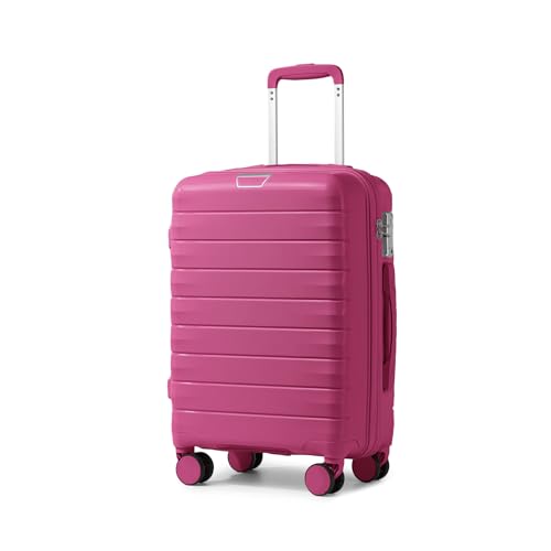 LARVENDER Carry On Luggage 22x14x9 Airline Approved, 20 Inch Hardshell & Lightweight PP Carry On Suitcase for Women with Spinner Wheels TSA Lock, Magenta