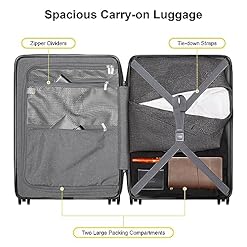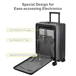 LEVEL8 Carry On Luggage with Compartment, 20 Inch Lightweight Hard Shell Rolling Suitcase with Wheels Airline Approved with Front Pocket, Double Tsa Locks, Grey