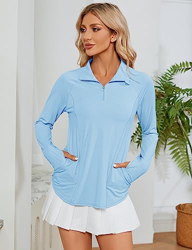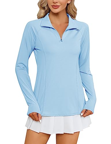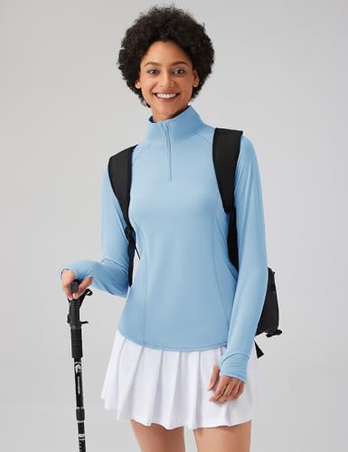 LOMON Women Long Sleeve Shirts Sun Protection 1/4 Zip Summer Quick Dry Hiking Shirts Quarter Zip Pullover for Women