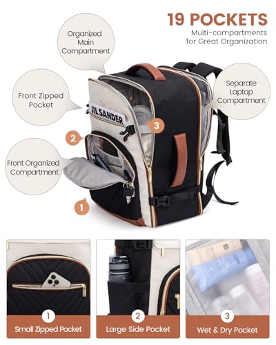 【40L Large Capacity & 19 Pockets】: This travel backpacks has 3 large compartments and 19 different pockets to accommodate all your travel essentials, such as clothes, cosmetics, shoes, books, 17.3-inch laptop, etc., making it easy to prepare for a 3 to 7-day journey.