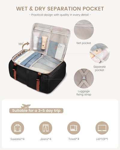 Wet-Dry Separation for Smart Packing:The travel backpack includes an internal wet-dry separation pocket to keep everything tidy, ideal for wet swimsuits or towels.Whether it’s a weekend getaway or an outdoor adventure, this luggage backpack offers versatile convenience for all your needs.