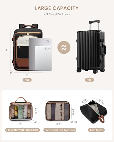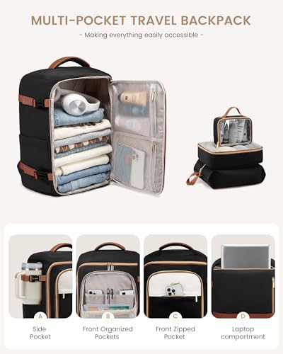 LOVEVOOK 40L Travel Backpack for Women, TSA Approved Carry On Backpack with 3 Packing Cubes, Personal Item Bag Fits 17″ Laptop, Water-resistant Carry On Bag for Airplanes