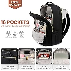 💯【Upgraded Laptop Backpack Women】: Classic V-shaped embroidery thread. Upgraded double LOVEVOOK no-slip metal zippers,water resistant Nylon fabric with polyester lining, ensures long lasting usage. Total of 4 compartments and 16 pockets for your computer,A4 folder,bottles,umbrellas,clothes,work supplies,college supplies and travel essentials.Dimensions: 12″L 19″H 7.8″D, Weight: 1.86lbs.