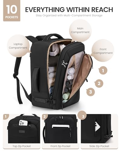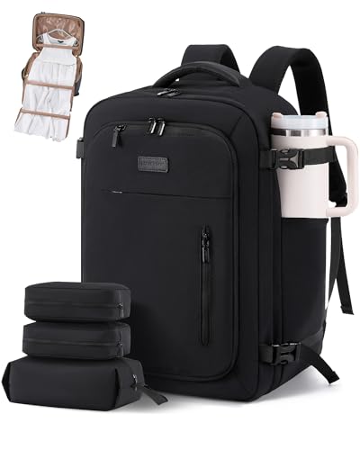 【Spacious 40L with Organized Packing】 With a 40L capacity and 3 extra packing cubes for a 3-5 day travel, this carry on backpack efficiently store clothes/shoes, cosmetics/toiletries, a 17.3″ laptop and more, keeping your items neatly arranged.