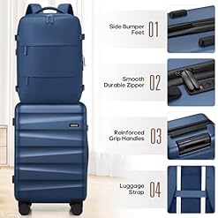 Maximized Storage & Organization : Maximized storage in this 20-inch carry on luggage includes 2 compartments, compression straps for clothing, and a separate pocket for smaller essentials. The matching backpack adds functionality with its own spacious compartments, designed to keep your travel essentials. This set is perfect for travelers who need both organized storage and on-the-go convenience.