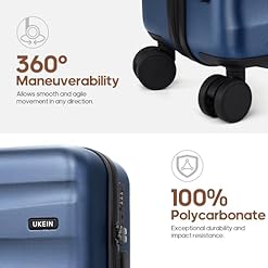 Luggage with Backpack Set : The UKEIN 20-inch carry-on luggage is designed to fit comfortably in overhead bins on almost any flight. Paired with a matching backpack for carrying your in-flight essentials, while the large toiletry bag helps you stay organized with all your travel necessities. Ideal for both business and leisure trips, this suitcase set offers a practical and stylish solution for any traveler.