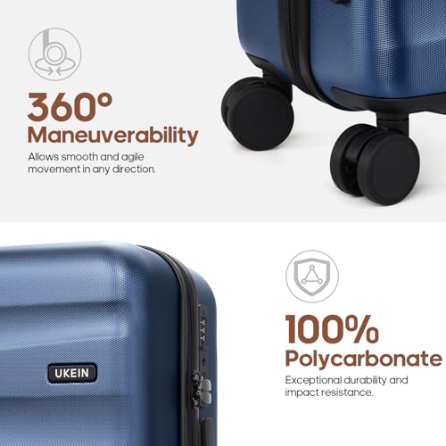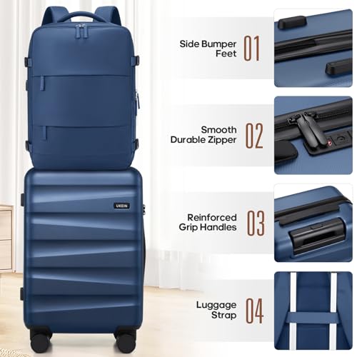 Luggage with Backpack Set : The UKEIN 20-inch carry-on luggage is designed to fit comfortably in overhead bins on almost any flight. Paired with a matching backpack for carrying your in-flight essentials, while the large toiletry bag helps you stay organized with all your travel necessities. Ideal for both business and leisure trips, this suitcase set offers a practical and stylish solution for any traveler.